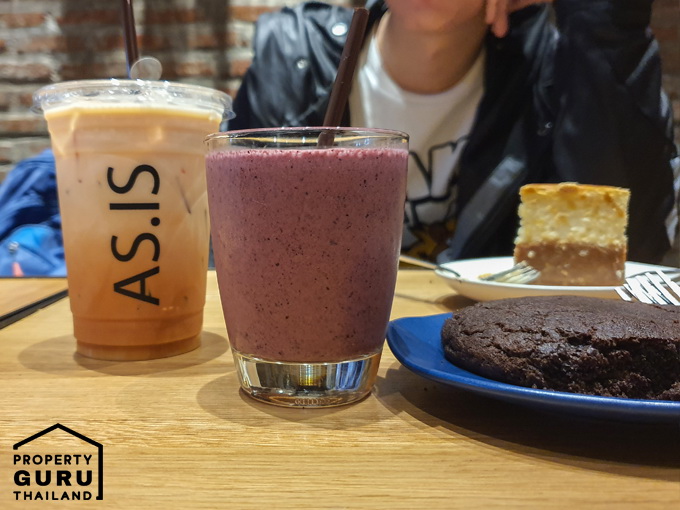 ด้านในเป็นร้านคาเฟ่ สไตล์ลอฟท์เก๋ๆ มีทั้งชา กาแฟ และเครื่องดื่มประเภทปั่น