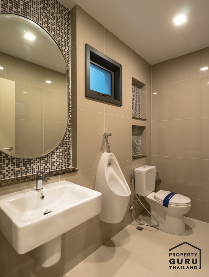 ห้องน้ำชั้นล่าง ให้โถสุขภัณฑ์ทั้งแบบนั่ง และแบบยืน