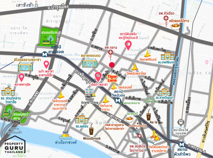 โครงการมีชื่อว่า "Tiger Lane" ตั้งอยู่ในซอยเจ้าคำรพ ถนนเสือป่า แขวงป้อมปราบ เขตป้อมปราบศัตรูพ่าย กรุงเทพมหานคร ย่านเสือป่าอยู่ติดกับย่านเยาวราช เจริญกรุง สำเพ็ง และสะพานเหล็ก ซึ่งเรารู้จักกันดีว่าเป็นย่านที่มีชาวไทยเชื้อสายจีนอยู่เยอะจนถูกขนานนามว่าเป็น "ไชน่า ทาวน์" และความขึ้นชื่อของละแวกนี้ก็มีทั้งแหล่งเที่ยว ร้านค้า ร้านอาหารดังๆ มากมาย รวมไปถึงธุรกิจขนาดเล็กอยู่เต็มไปหมด เดี๋ยวไปดูพิกัดโครงการ แล้วเราจะพาเดินชมบรรยากาศรอบๆ โครงการกันต่อค่ะ
