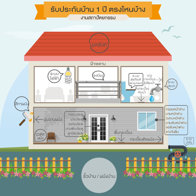 หลังจากที่เราซื้อที่อยู่อาศัยแล้วนั้น ไม่ว่าจะเป็นบ้าน ทาวน์โฮม หรือคอนโด ตามปกติแล้วทุกโครงการจะมีสัญญาระบุให้ทราบว่า ที่อยู่อาศัยที่เราซื้อไปนั้น มีการรับประกันความชำรุดบกพร่องของบ้านและอุปกรณ์มาให้ด้วย ซึ่งถ้าเป็นบ้านหรือทาวน์โฮม มักจะแบ่งออกเป็น 1 ปี และ 5 ปี หลายๆ คนสงสัยว่า เพิ่งอยู่ได้แค่ปีกว่าๆ วันนึงฝนตกหนักสาดโดนหน้าต่างบ้านจนกรอบหน้าต่างบวมฉึ่ง จึงอยากไปขอเคลมประกัน ก็อาจจะหมดสิทธิ์ เพราะส่วนนี้เขารับประกันแค่ 1 ปี นับจากวันโอนกรรมสิทธิ์ อย่างไรก็ตาม ก็มีบางส่วนที่เขารับประกันให้ 5 ปี ซึ่งจะมีอะไรบ้างนั้น รายละเอียดอยู่ด้านล่างเลยค่ะ