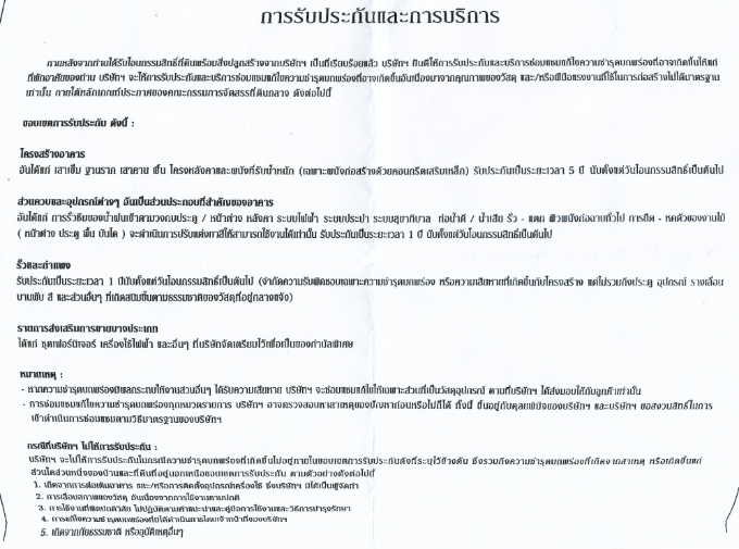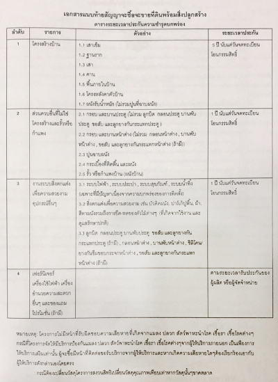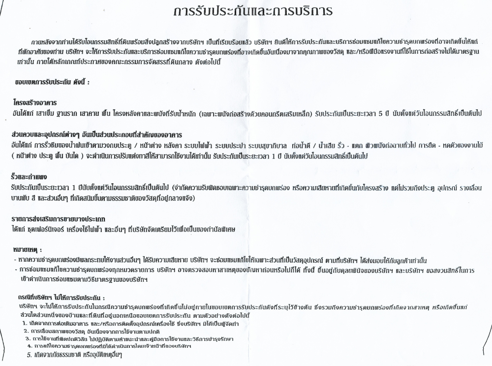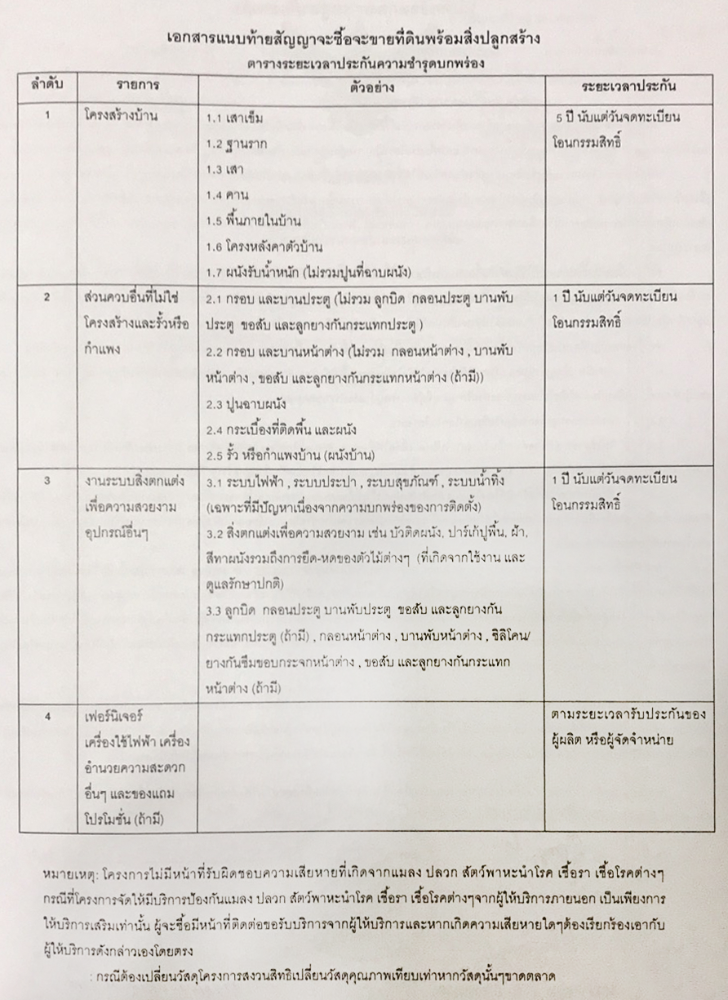 ตัวอย่างข้อความการ "รับประกันบ้าน" ในสัญญาของผู้ประกอบการ