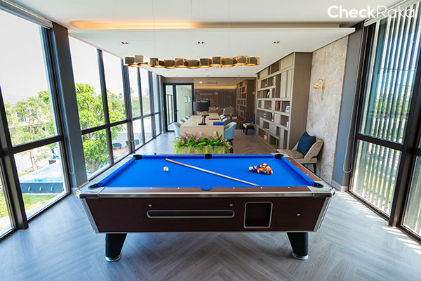 มีโต๊ะพูลด้วย พื้นที่เป็นกระจกสูงถึงเพดาน ทำให้รับแสงและเทควิวได้แบบเต็มๆ
