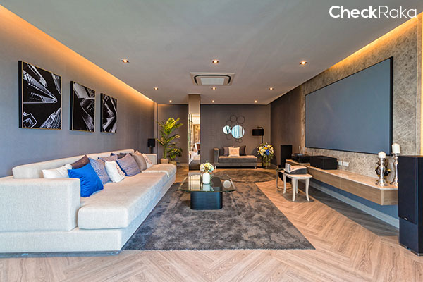 พื้นที่ Theater Room จัดเต็มด้วยชุดเครื่องเสียง และจอขนาดใหญ่