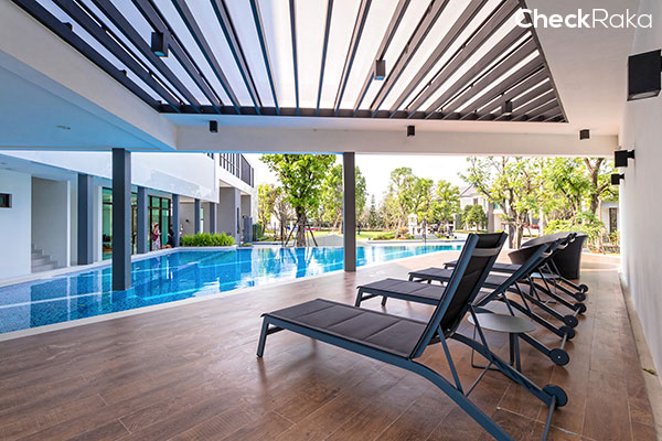 พื้นที่ส่วนนั่งพักผ่อนบริเวณสระว่ายน้ำ