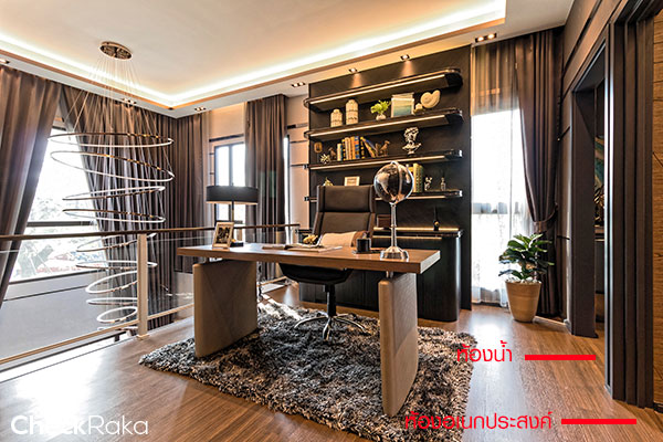 ชั้นบนมีพื้นที่ว่างเยอะทีเดียวค่ะ เป็นห้องทำงานได้เลย สังเกตซ้ายมือจะเป็น Double Volume