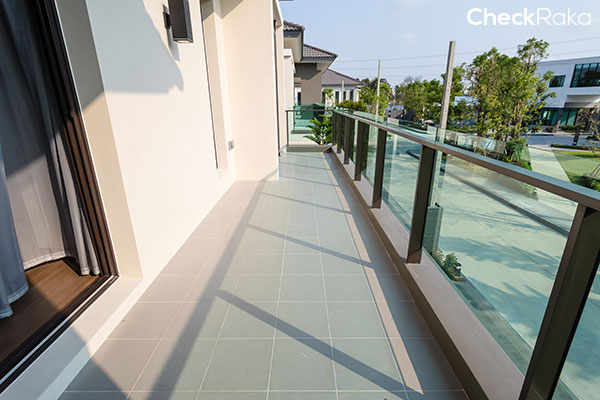 สำหรับ Master Bedroom จะมีพื้นที่ระเบียง เดี๋ยวเราออกไปดูกันค่ะ