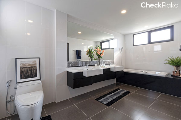 ห้องน้ำใน Master Bedroom จะมีอ่างล้างหน้า 2 อ่าง พร้อมด้วยอ่างอาบน้ำ