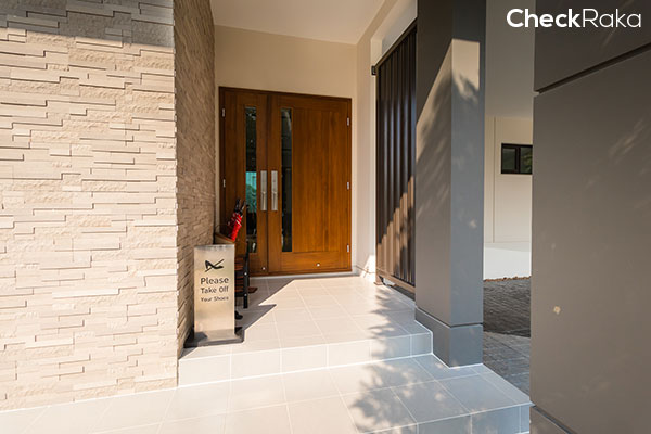 ประตูหน้าบ้านเป็นไม้สักทั้งบาน