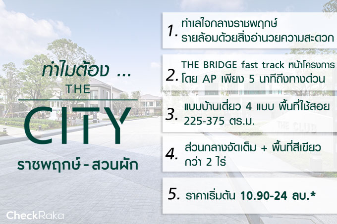 บ้านเดี่ยวหลังใหญ่ราคาไม่แรง : เดอะ ซิตี้ ราชพฤกษ์-สวนผัก พร้อม The Bridge Fast Track หน้าโครงการ