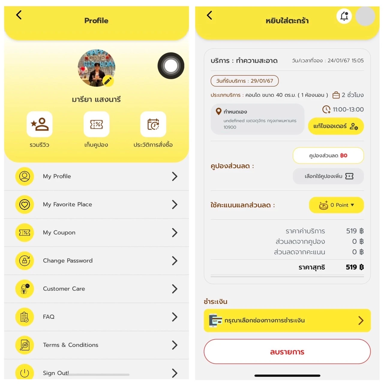 แอปทำความสะอาดน้องใหม่ สุดน่ารักที่มาพร้อมกับตัวการ์ตูนคิวท์ๆ แต่ก็เต็มไปด้วยฟังก์ชั่นการใช้งานครบครันที่ไม่แพ้เจ้าอื่นๆ อีกทั้งยังใช้งานง่ายด้วยค่ะ ครอบคลุมตั้งแต่ทำความสะอาดทั่วไป ซักอบรีด ล้างแอร์ หรือพ่นน้ำยาฆ่าเชื้อก็มีค่ะ ในราคาเริ่มต้นที่ 500 บาท ต่อ 2 ชั่วโมง เป็นราคาที่ยังไม่รวมภาษีมูลค่าเพิ่มอีก 7% ค่ะ ถ้ารวมแล้วก็จะเบ็ดเสร็จ 535 บาท ซึ่งตอนนี้ต้องชำระด้วยบัตรเครดิต หรือบัตรเดบิตเท่านั้นค่ะ สำหรับราคาเริ่มต้นนี้จะเป็นของขนาดห้องไม่เกิน 40 ตร.ม. ได้ทั้งคอนโดและหอพักเลยค่ะ สามารถเลือกวันและเวลาที่เราสะดวกได้ตามต้องการ ภายในแอปจะคอยมีบอกโปรโมชั่นอีกด้วยค่ะ