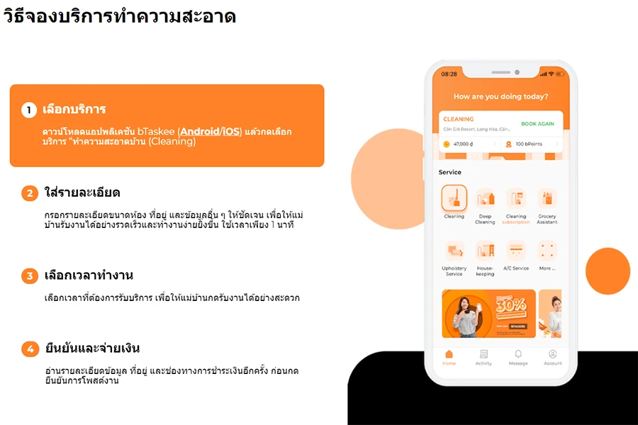 แอปฯ bTaskee แม่บ้านมาใหม่จากเวียดนาม นำเข้ามาสู่เมืองไทยแล้ว มีทั้งแบบรายครั้ง และรายเดือน สำหรับรายครั้งจะเริ่มต้นที่ 528 บาท รายเดือนเริ่มต้นที่ 428 บาท สำหรับห้องขนาดไม่เกิน 55 ตร.ม. ภายในเวลา 2 ชม. โดยจะมีให้เลือกบริการเพิ่มเติมได้ด้วย เช่น ทำอาหาร หรือ รีดผ้า ซึ่งจะมีการบวกค่าใช้จ่ายและราคาเพิ่มตามไปด้วย นอกจากนี้ยังสามารถเลือดแม่บ้านได้เอง หรือเลือกแม่บ้านด้วยการให้แอปฯ จัดลำดับความสำคัญของแม่บ้านที่เราชื่นชอบได้ แต่ก็มีค่าใช้จ่ายเพิ่มเติมอีกเช่นกันค่ะ ในส่วนหน้าที่ให้จ่ายเงิน เลือกจ่ายได้ทั้งแบบเงินสด บัตรเครดิต และ bPay ถ้าเรามีโค้ดอยู่ก็สามารถใช้โค้ดโปรโมชั่นลดราคาได้อีกด้วย ซึ่งตอนนี้ทางแอปฯ ก็เป็นน้องใหม่ มีโค้ดสำหรับผู้ที่ใช้งานครั้งแรกให้ด้วยค่ะ สำหรับแม่บ้านของทางแอปฯ ก็มีการตรวจสอบประวัติอาชญากรรม และได้รับการประเมินผลงานการทำความสะอาดบ้านของแม่บ้านเป็นประจำ ทำให้มีความน่าเชื่อถือ และมั่นใจได้ว่าปลอดภัยค่ะ
