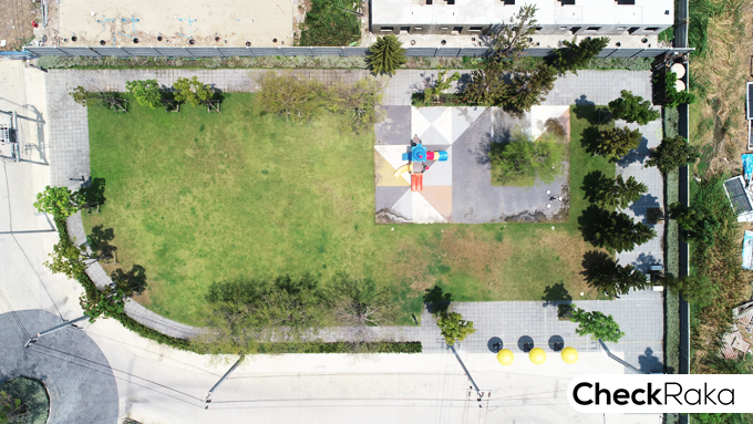 ภาพจากมุมสูงแสดงให้เห็นตำแหน่งของสวนสาธารณะของโครงการ