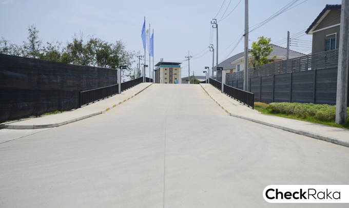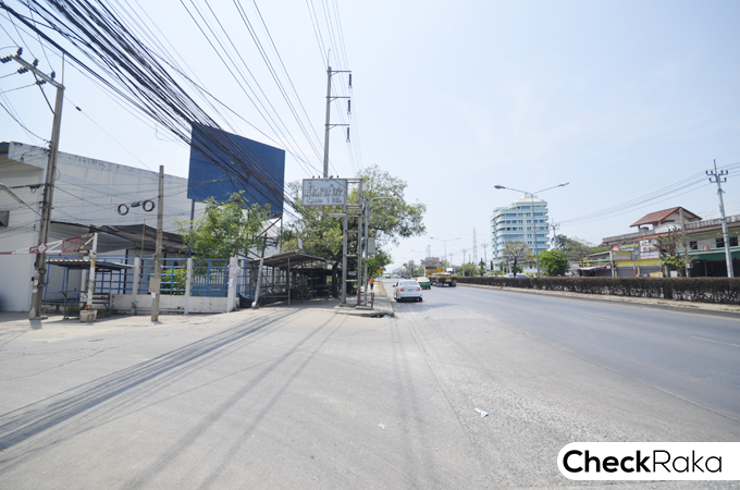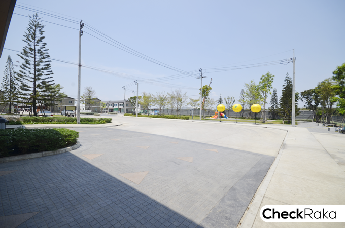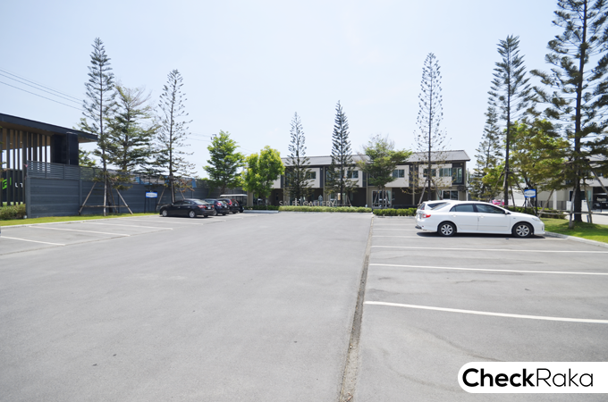 จากภาพที่แล้วฝั่งซ้ายมือปัจจุบันจะเป็นลานจอดรถ แต่ในอนาคตคือ พื้นที่สำหรับก่อสร้างทาวน์โฮม