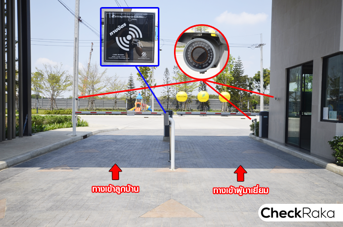 ไม่ต้องเสียเวลารอคนภายนอกที่กำลังแลกบัตร พอสแกนบัตรแล้วไม้กั้นก็จะเปิดอัตโนมัติ ที่ซุ้มประตูทางเข้าโครงการมีการ์ดสแกน CCTV และมีห้องสำหรับ รปภ. กั้นตรงกลางระหว่างทางเข้าและทางออก นอกจากนี้ยังมีทางเดินเข้า