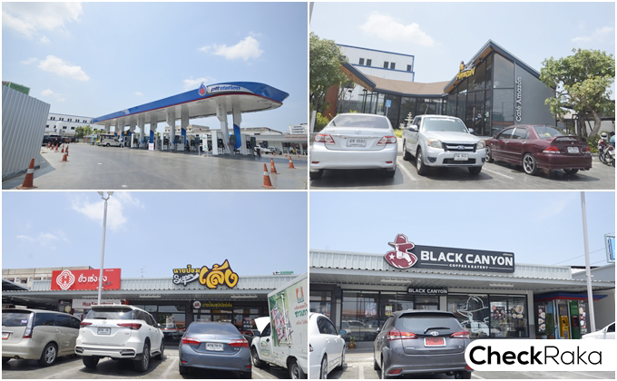 ภายในปั๊ม ปตท. ข้างๆ ตลาดสดบางพลี มีร้านอาหารมากมาย