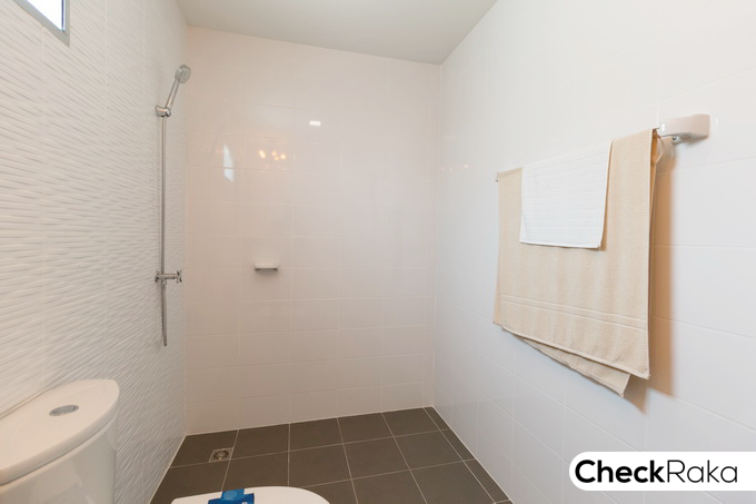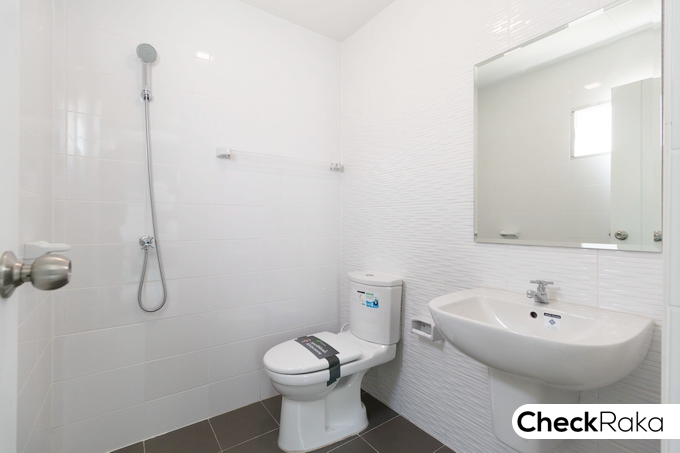 สุขภัณฑ์ของ Kohler/Anglefield และที่ผนังด้านหลังติดกระจกสำหรับระบายอากาศมาให้ด้วย