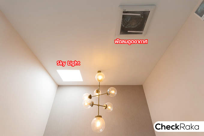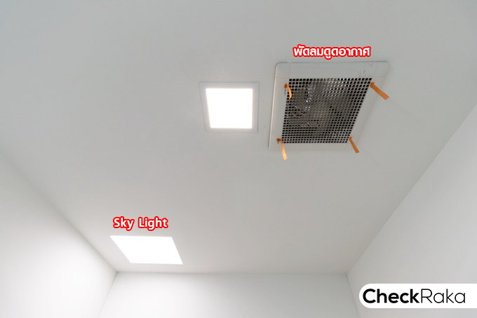 ฝ้าเพดานจะมีพัดลมดูดอากาศ และ Sky Light ให้ทุกหลัง
