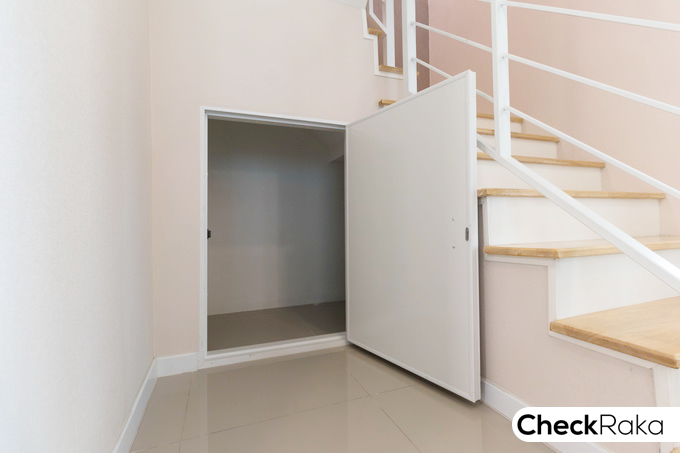 ข้างบันไดทางขึ้นชั้น 2 มีประตูห้องเก็บของใต้บันไดอยู่ตรงส่วนนี้