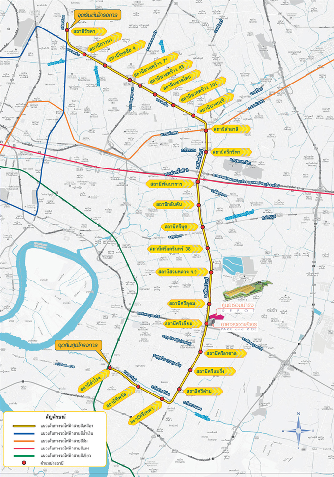 รถไฟฟ้าสายสีเหลือง (ลาดพร้าว-สำโรง) จะเน้นรองรับประชาชนถนนลาดพร้าว, ถนนศรีนครินทร์, พัฒนาการ ฝั่งทิศตะวันตกของกรุงเทพ ซึ่งเป็นแหล่งที่อยู่อาศัยมีชุมชนหนาแน่น รถไฟฟ้าโครงการนี้มีระยะทางทั้งสิ้น 30.4 กม. โดยแบ่งออกเป็น 2 ช่วง คือช่วงสถานีลาดพร้าว-พัฒนาการ และช่วงพัฒนาการ-สำโรง คาดว่าจะแล้วเสร็จประมาณ ปี 2563 ที่สถานีสำโรงก็จะสามารถเชื่อมต่อกับรถไฟฟ้าสายสีเขียวเข้มได้ด้วย โดยสถานีที่ใกล้โครงการมากที่สุดคือ สถานีศรีเทพา มีระยะห่างจากโครงการประมาณ 9 กม.