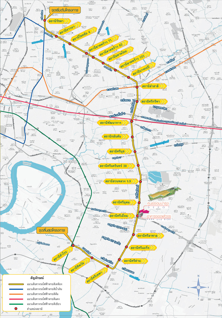 รถไฟฟ้าสายสีเหลือง (ลาดพร้าว-สำโรง) จะเน้นรองรับประชาชนถนนลาดพร้าว, ถนนศรีนครินทร์, พัฒนาการ ฝั่งทิศตะวันตกของกรุงเทพ ซึ่งเป็นแหล่งที่อยู่อาศัยมีชุมชนหนาแน่น รถไฟฟ้าโครงการนี้มีระยะทางทั้งสิ้น 30.4 กม. โดยแบ่งออกเป็น 2 ช่วง คือช่วงสถานีลาดพร้าว-พัฒนาการ และช่วงพัฒนาการ-สำโรง คาดว่าจะแล้วเสร็จประมาณ ปี 2563 ที่สถานีสำโรงก็จะสามารถเชื่อมต่อกับรถไฟฟ้าสายสีเขียวเข้มได้ด้วย โดยสถานีที่ใกล้โครงการมากที่สุดคือ สถานีศรีเทพา มีระยะห่างจากโครงการประมาณ 9 กม.