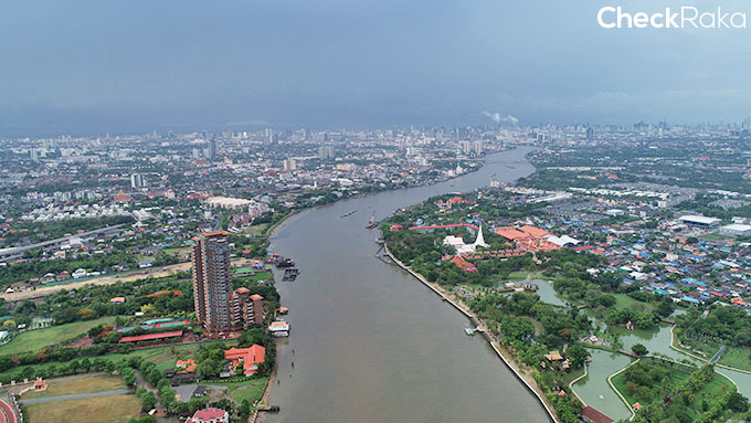 มุมสูงจาก ถ.รัตนาธิเบศร์มองไปฝั่งเมือง เห็นตึกสูงอยู่ลิบๆ