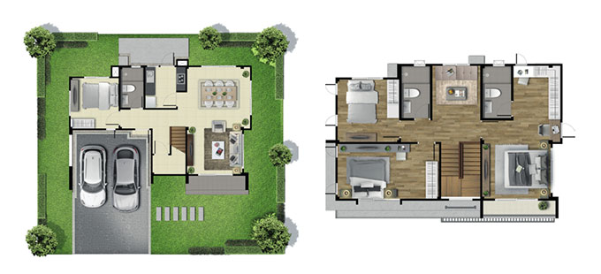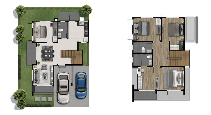 3. MONZA พื้นที่ใช้สอย 190 ตร.ม. 4 ห้องนอน 3 ห้องน้ำ 1 ห้องนั่งเล่น 1 โซนอเนกประสงค์ชั้นบน ที่จอดรถ 2 คัน (ในร่ม)
