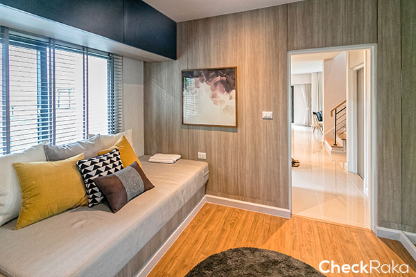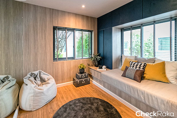 ชั้นล่างมีห้องนอน 1 ห้อง เช่นเดียวกับ Type อื่นๆ บ้านตัวอย่างทำเป็นห้องนั่งเล่น นั่งอ่านหนังสือเงียบๆ ชิลล์ๆ ได้ค่ะ