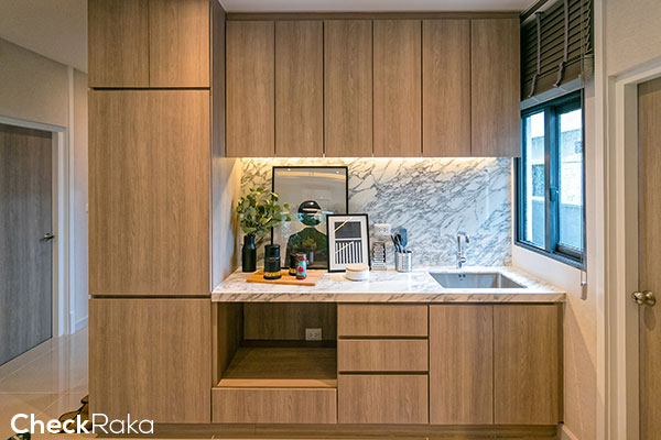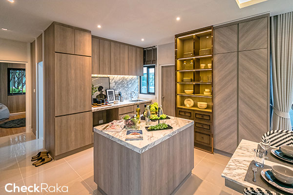 อีกมุมค่ะ ห้องครัวจะเป็นครัวแบบเปิด มีพื้นที่เหลือสำหรับทำเป็นบาร์เล็กๆ ได้