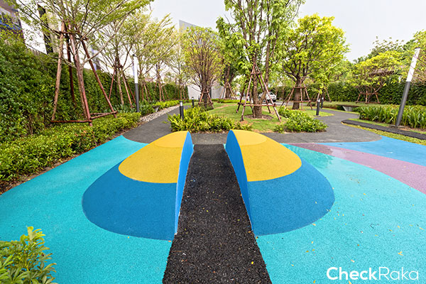 ภาพจำลองโซน Kids Bike Lane และมุมนั่งพักผ่อนภายในโครงการ