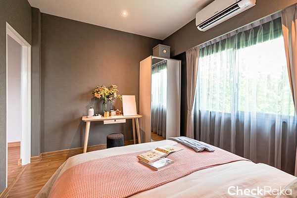 ปลายเตียงเหลือพื้นที่สำหรับตู้เสื้อผ้า โต๊ะครื่องแป้ง