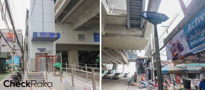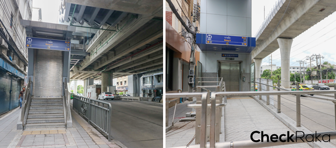 จุดที่ 1 - ใกล้ถนนสุทธาวาส ตรงตลาดศาลาน้ำเย็น มีลิฟท์ และบันไดขึ้น-ลง