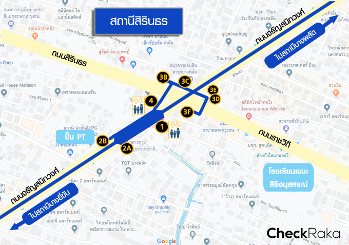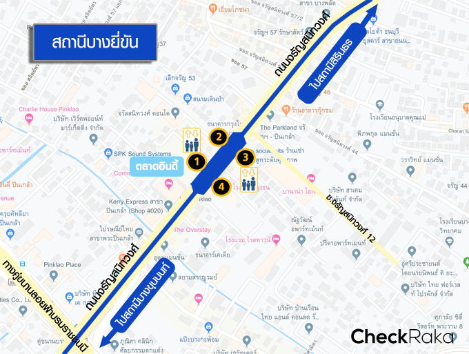จุดที่ 3C - หัวมุมถนนสิรินธรตัดกับถนนจรัญสนิทวงศ์ หน้าโรงรับจำนำ (ฝั่งธนาคารออมสิน) มีบันไดขึ้น-ลง