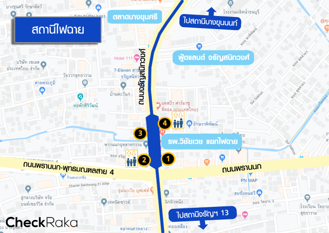 รพ.วิชัยเวช แยกไฟฉาย สามารถใช้ทางออกจุดที่ 4 จะสะดวกสุดค่ะ