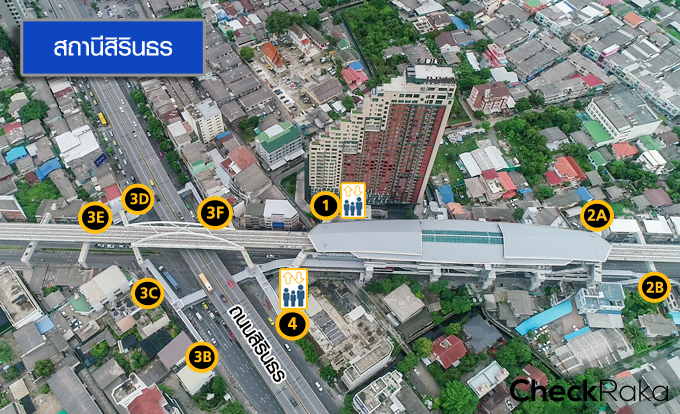 ภาพมุมสูงของสถานีสิรินธรแสดงให้เห็นประตูทางเข้า-ออก