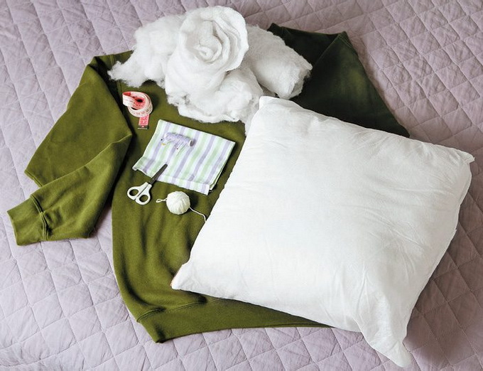 ไอเดียนี้ เหมาะกับคนที่ไม่ค่อยมีเวลา บวกกับไม่ค่อยมีทักษะงานฝีมือเท่าไหร่ ง่ายๆ เลยค่ะ เสื้อยืดแขนยาวเก่าๆ หรือเสื้อสเว็ตเตอร์ กับหมอนเก่าๆ 1 ใบ จะทำยังไงนั้น ไปดูวิธีการกันเลยจ้า
