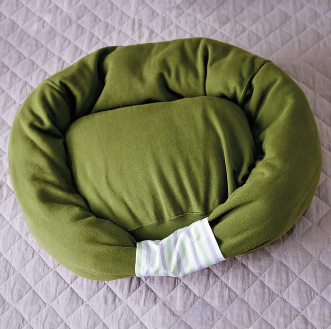 1. ที่นอนแมวจากเสื้อสเว็ตเตอร์ และหมอนเก่าๆ