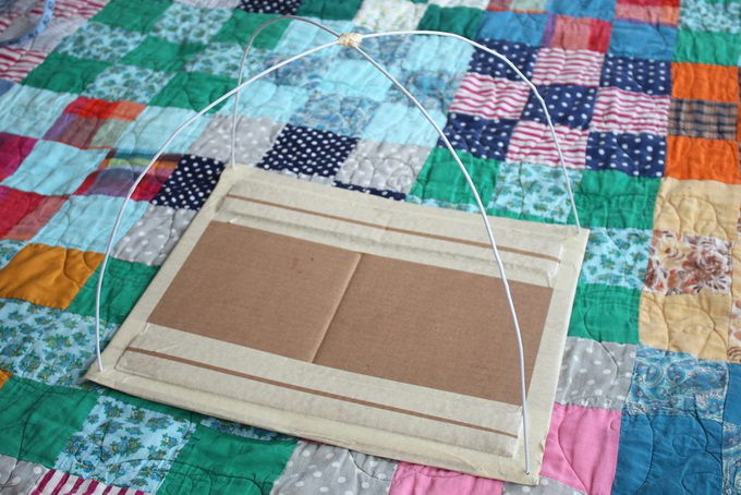 เอาไม้แขวนเสื้อที่ดัดโค้งแล้ว มาไขว้กันแล้วยึดด้วยสก็อตเทปให้มั่นคงแข็งแรง ตามรูปแบบนี้
