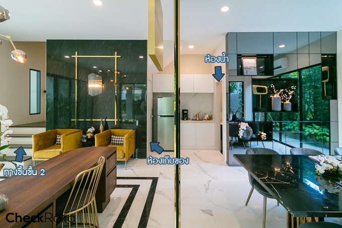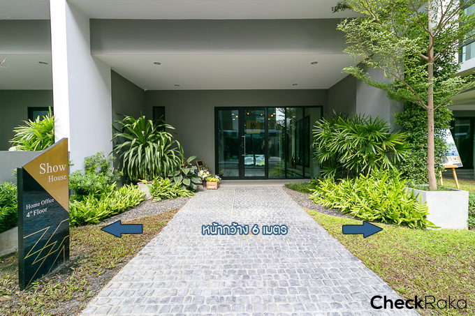 ถ่ายย้อนกลับไปจะเห็นว่าบ้านตัวอย่างตกแต่งมาให้สวยงามมาก