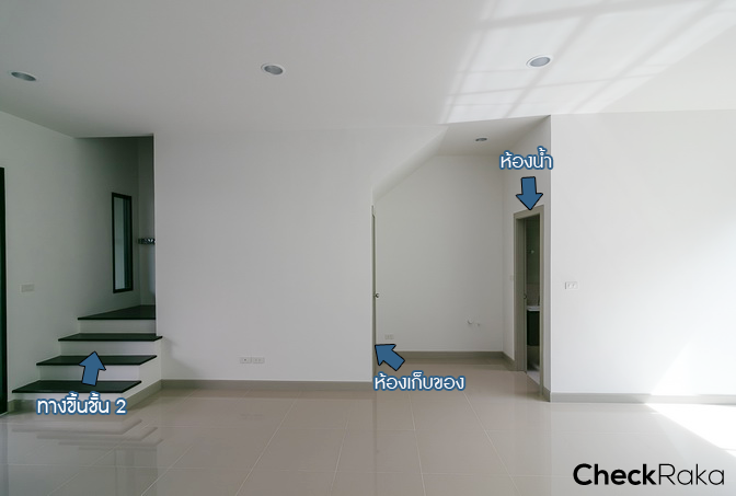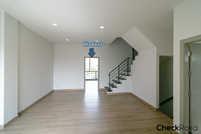 เปรียบเทียบกับบ้านเปล่ามาตรฐานในมุมเดียวกัน ส่วนแรกจะเห็นเป็นโถงโล่งๆ แบบนี้ พื้นเป็นพื้นลามิเนตหนา 12 มม.