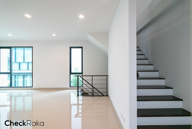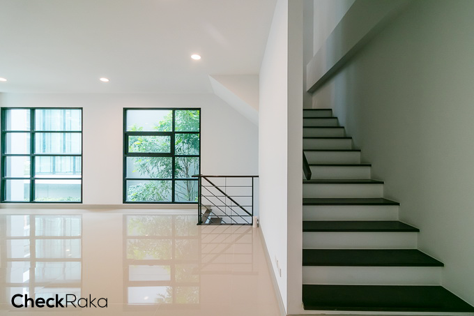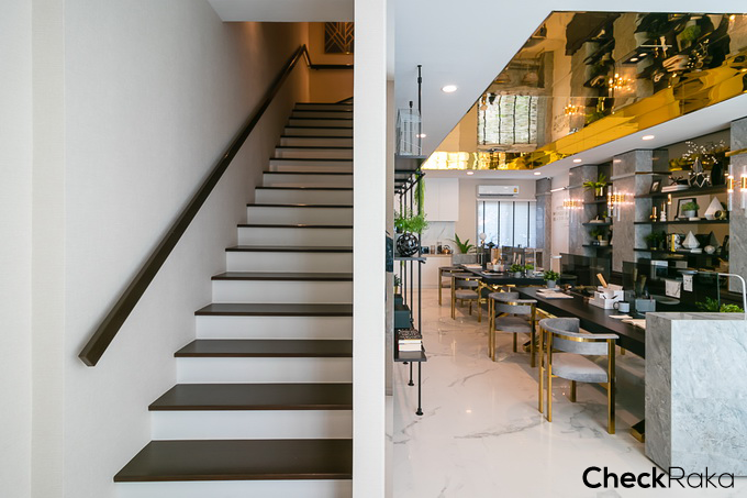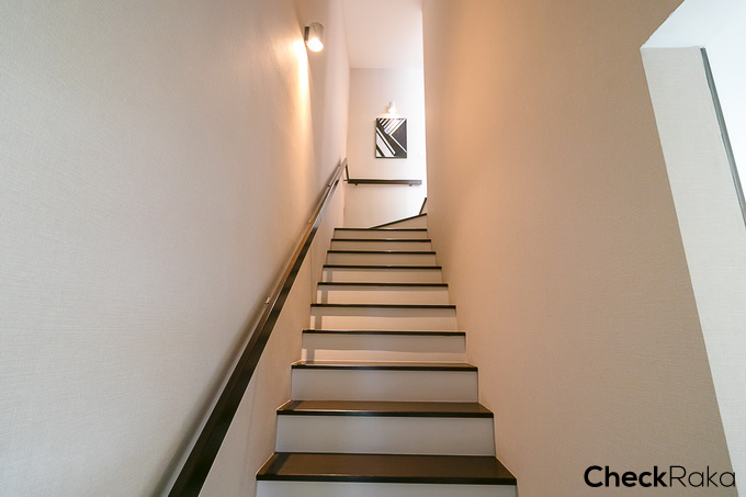 จบชั้น 1 แล้ว เราขึ้นไปดูที่ชั้น 2 กันต่อเลยค่ะ บันไดที่นี่วางตัวอยู่ช่วงหน้าบ้าน เป็นบันไดโครงสร้างคอนกรีตเสริมเหล็กให้ความรู้สึกมั่นคง เดินแล้วไม่มีเสียงดัง พื้นบันไดปูด้วยไม้เทียมสีน้ำตาล