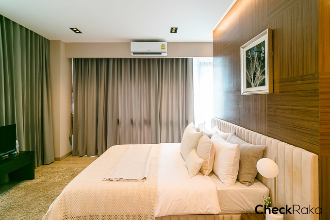 ปลายเตียงสามารถ Built-in ตู้เสื้อผ้าขนาดใหญ่และมีประตูทางเข้าห้องน้ำจากในห้องนอน