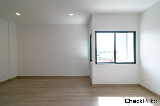 ห้องนอนชั้น 3 มีขนาดใหญ่ วางตัวอยู่ฝั่งด้านหน้าบ้าน สามารถวางเตียงขนาด 5-6 ฟุตได้สบายๆ