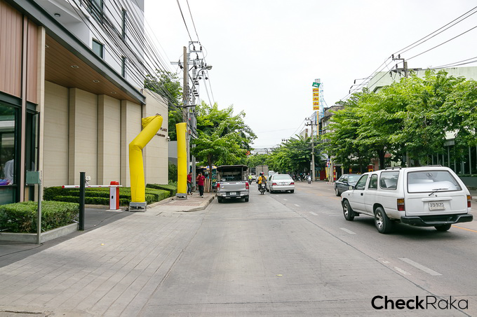 บรรยากาศด้านหน้าโครงการฝั่งซ้ายมือ Sales Office ตั้งอยู่ด้านนี้