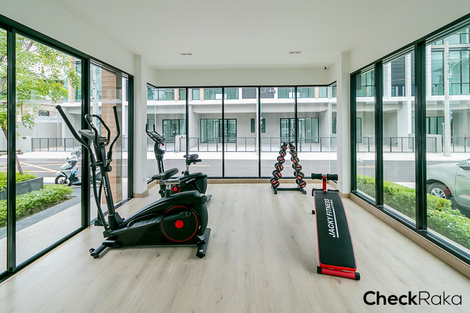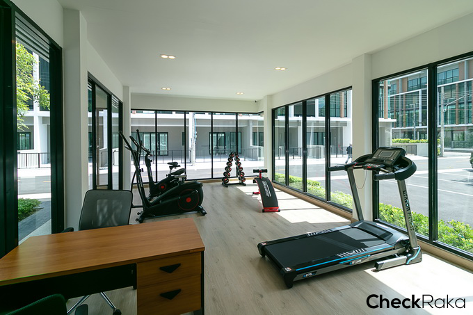 ติดกับที่จอดรถจะเป็นฟิตเนส ซึ่งเป็นอาคารชั้นเดียว มีกระจกล้อมรอบ