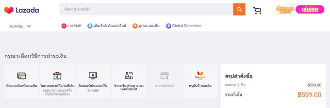 จากนั้นจะเด้งไปที่หน้า "ชำระเงิน" โดยจะมีวิธีการจ่ายเงินให้เราเลือก ดังนี้ บัตรเครดิต/บัตรเดบิต, โมบายแบงค์กิ้ง/เอทีเอ็ม แนะนำโมบายแบงค์กิ้ง (ไม่มีค่าธรรมเนียม), อินเตอร์เน็ตแบงค์กิ้ง มีเคพลัส, ชำระเงินผ่านทางเคาเตอร์เซอวิส, ทรูมันนี่ วอลเล็ต