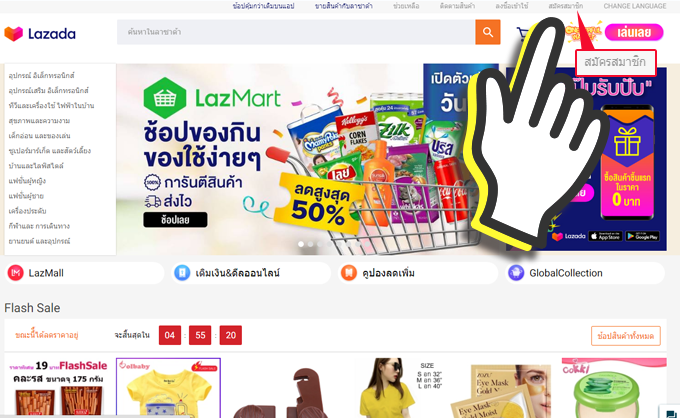ก่อนอื่นเราต้องเข้าไปที่หน้าเว็บ http://www.lazada.co.th สำหรับผู้ที่เคยใช้งานการช็อปปิ้งออนไลน์ผ่าน Lazada มาบ้างแล้วนั้นอาจจะคุ้นเคยกับการใช้งาน แต่สำหรับผู้ที่ยังไม่เคยใช้งานมาก่อน เบื้องต้นต้องมีการสมัครสมาชิกผ่าน Lazada ก่อนค่ะ เข้าไปสมัครได้ที่นี่