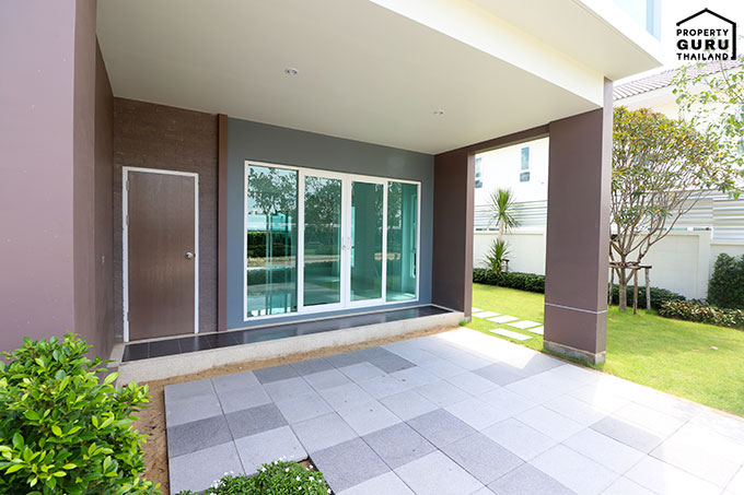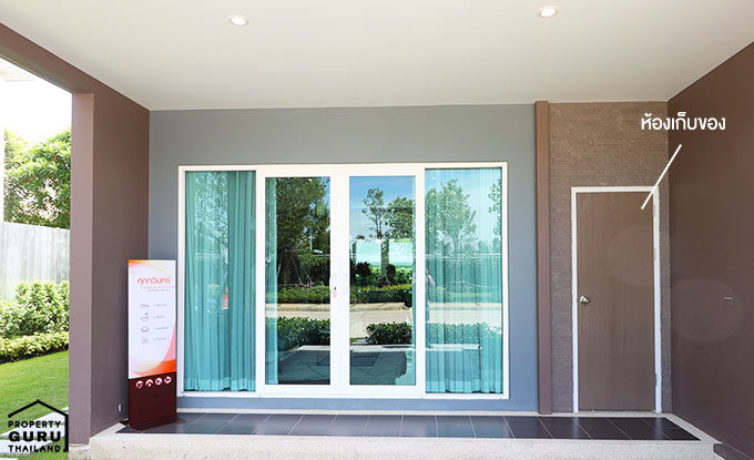 จอดรถหน้าบ้านได้ 2 คัน ขวามือคือห้องเก็บของ