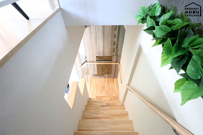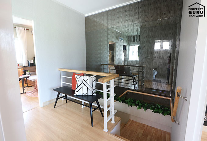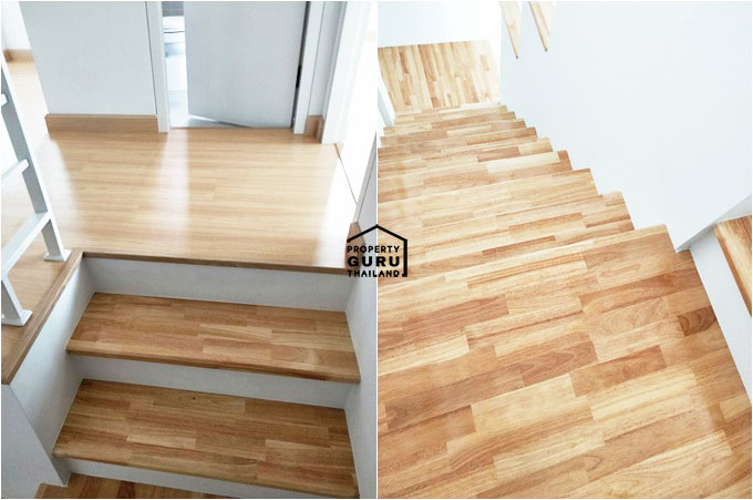 บันไดชั้น 2 หน้าตาเป็นแบบนี้เลย ส่วนพื้นจะเป็นลามิเนตค่ะ