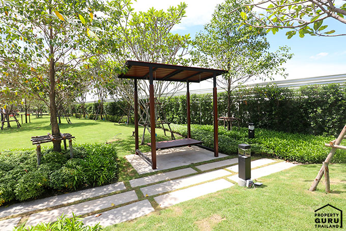 พื้นที่สวนสาธารณะสีเขียว และมุมนั่งพักผ่อนของโครงการ