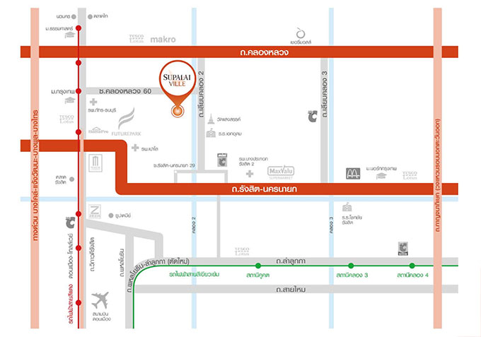 แผนที่โครงการ ศุภาลัย วิลล์ รังสิต - คลองหลวง - คลอง 2 (Supalai Ville Rangsit - Klongluang - Klong 2)